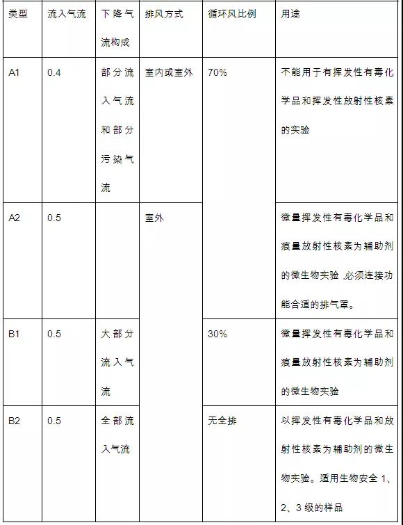 6、Ⅱ級安全柜按排放氣流占系統(tǒng)總流量的比例及內部設計結構分型?